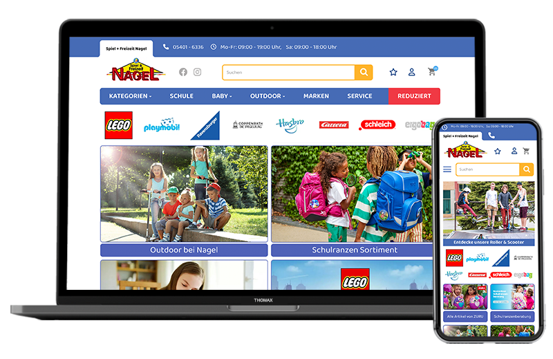 Für das traditionsreiche Spielwarengeschäft Spiel+ Freizeit Nagel aus Georgsmarienhütte haben wir einen umfangreichen PrestaShop-Shop umgesetzt, der stationären Handel und E-Commerce nahtlos verbindet. Ob klassischer Versand oder Click & Collect – die Website ermöglicht beides.